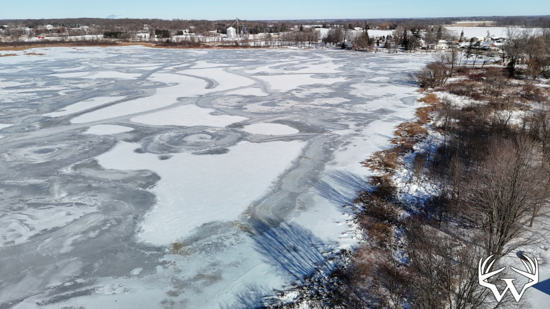 Drive into Auroraville on 49, 264-acre pond will be visible. Boat entry in Otto Brey Park.Please respect landowners and do not trespass on property for viewing without permission.