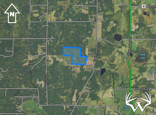 From St. Croix Falls drive North on Hwy 87 approximately 14 miles. Then head West on 285ht Ave 1 mile. Then South on River Rd ¾ mile. Property access on the West side of River Rd.Please respect landowners and do not trespass on property for viewing without permission.