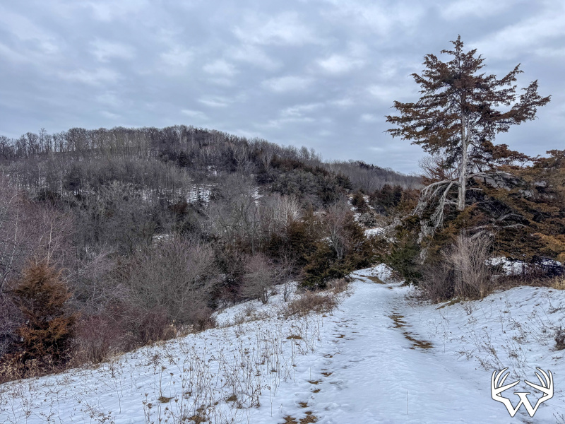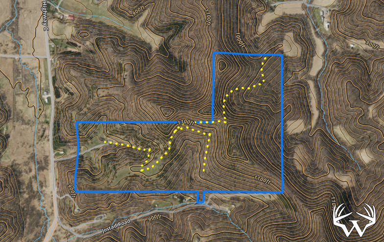 A nearly 4-acre ridge-top opening offers an ideal location for a food plot or additional recreational use. The eastern 80 acres rise into a larger ridge system and include three distinct saddles that funnel into the back of the property—prime whitetail travel corridors, especially during the rut.