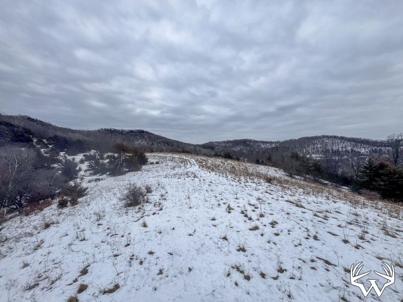 The land provides several excellent building site options, whether you prefer elevated hilltop views or secluded valley locations. The western half of the property has a classic old-pasture feel, with a diverse mix of cedars, scattered apple trees, and open timber. The terrain near the entrance features multiple small valleys flowing in several directions, creating both scenic beauty and natural wildlife movement.