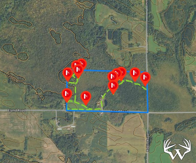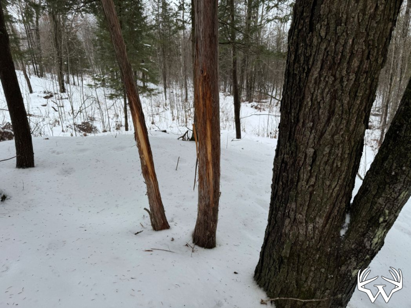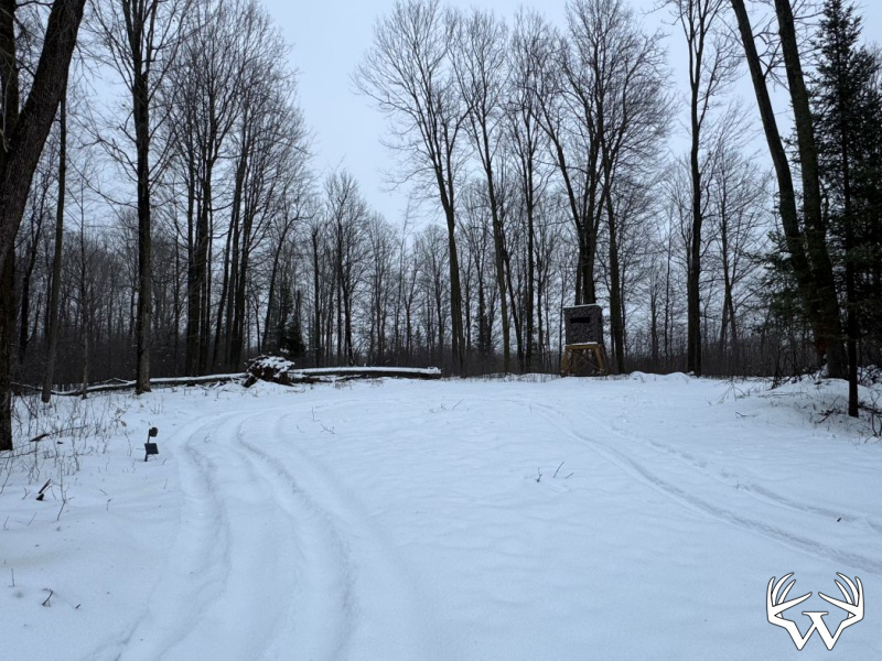 The land features a diverse habitat proven to hold wildlife, including deer, turkeys, and bear. Tag alder lowlands provide excellent browse and bedding areas for trophy whitetails, with big bucks already documented on camera. A rich mix of mast-bearing hardwoods, evergreens, and tamarack creates ideal cover and thermal protection. Two elevated hills offer commanding vantage points with maximum visibility across the property. Lightly hunted over the past several years, this property is ready to hunt immediately while still offering flexibility to tailor it to your preferred hunting style.