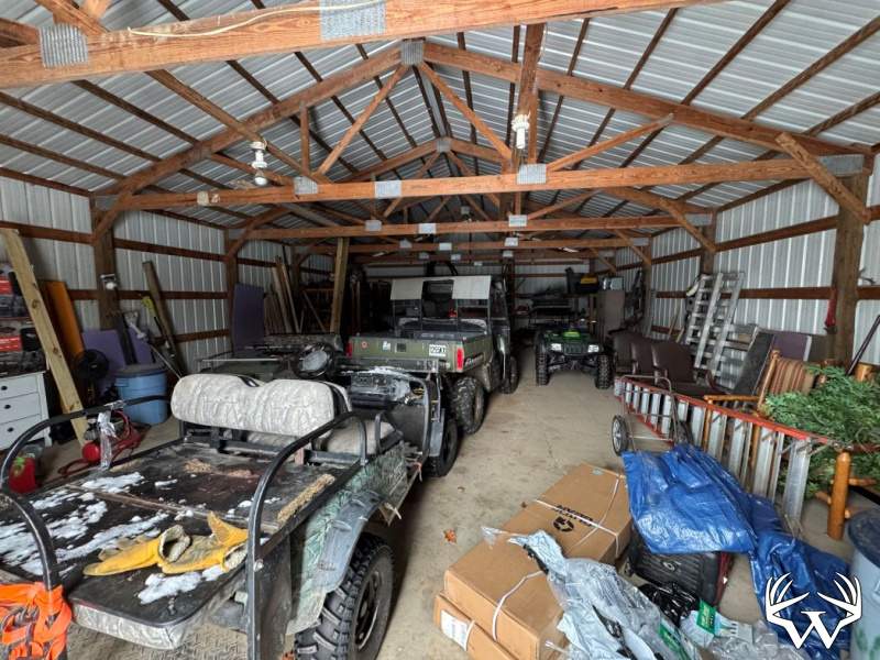 Outdoor amenities include a stocked pond with two new aerators, two established food plots with strategically placed water holes, and a meticulously manicured trail system providing easy access throughout the acreage. A 30x48 pole barn offers ample space for equipment, ATVs, and recreational gear.