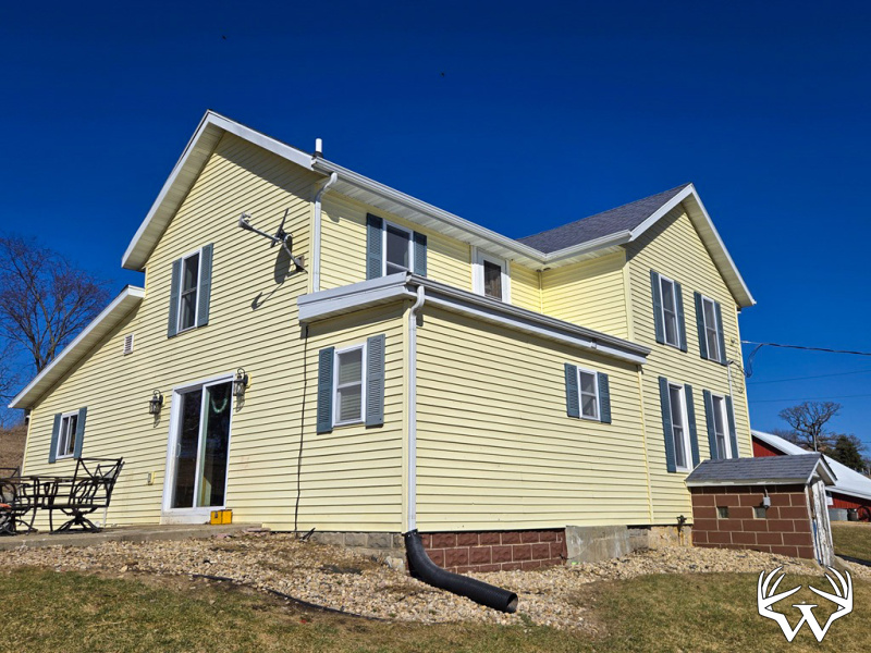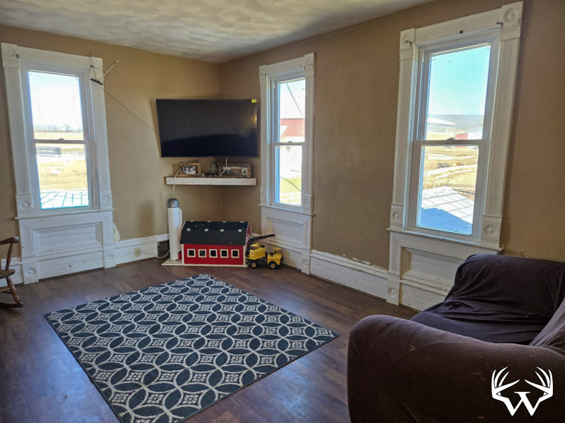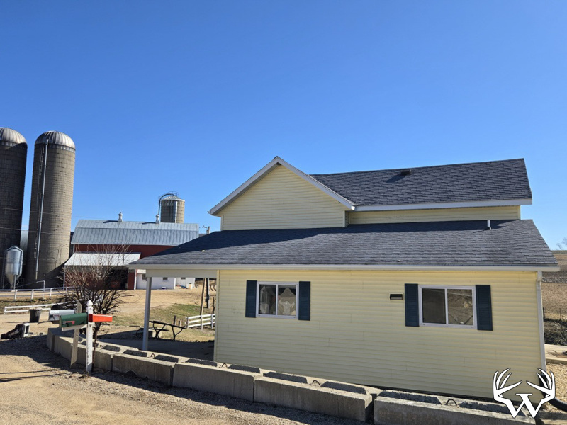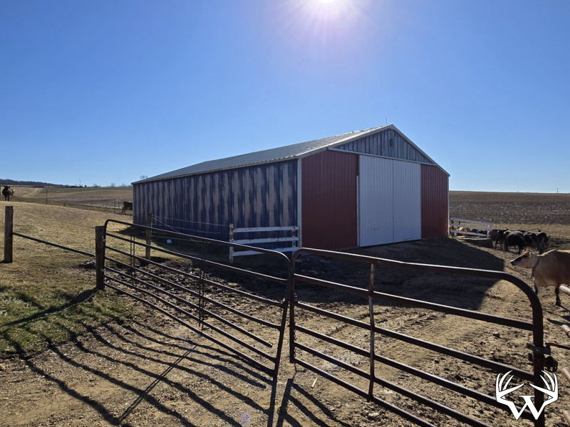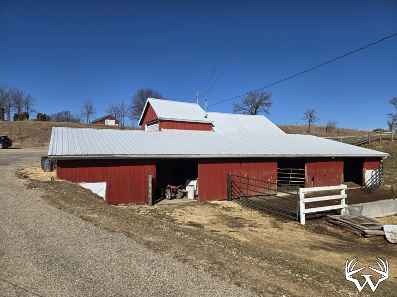 The existing farmstead includes a 4-bedroom, 1-bath home that features oak cabinetry and farmhouse character along with multiple farm buildings including: