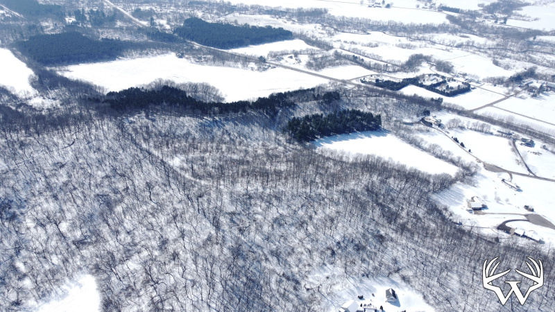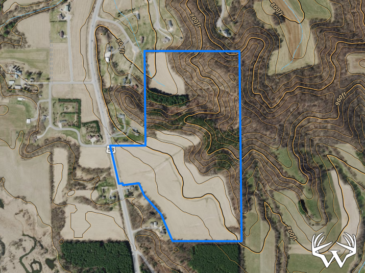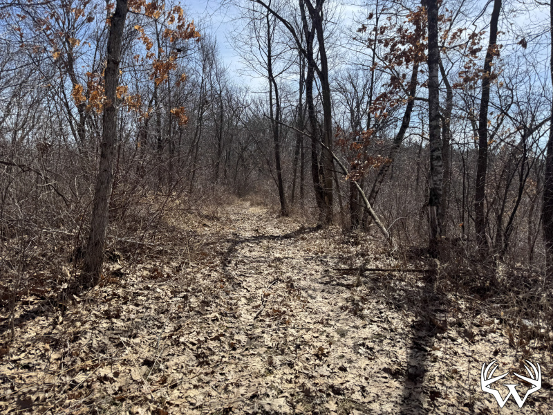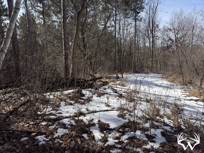 The wooded acreage consists of a diverse mix of hardwoods, softwood thickets, and pine plantations, creating ideal habitat for wildlife. Positioned along the end of a long ridge system, the property includes several ridge points, making it a strong hunting parcel with natural travel corridors and bedding areas.