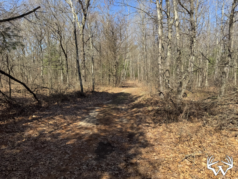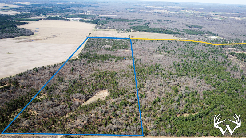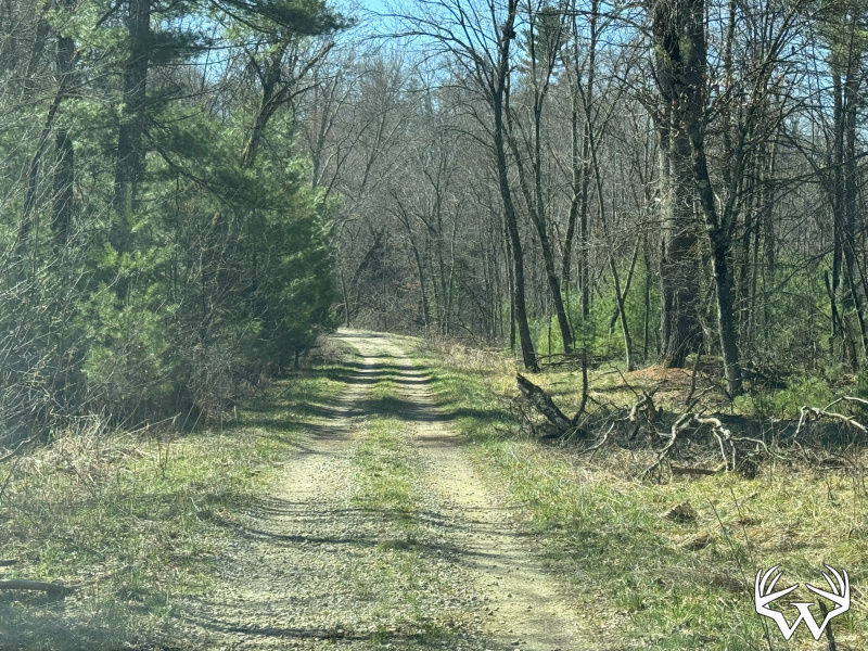 The land features gently rolling terrain with an established trail system that allows full access throughout the property. Surrounded on three sides by agricultural fields, this parcel naturally funnels wildlife and creates prime habitat for whitetail deer, turkeys, and grouse. Deer and turkey populations in this area are consistently strong, with neighboring properties producing mature bucks—including a 180"+ class deer harvested during the 2024 gun season.