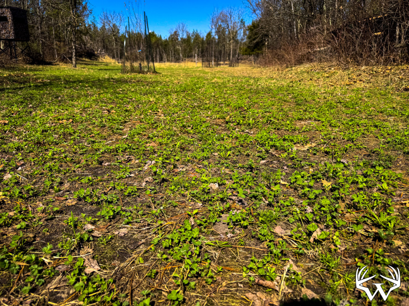 Two well-established food plots, each over an acre in size, are strategically placed within the property. These plots include a diverse blend of clover, chicory, turnips, and winter rye to provide year-round attraction, especially after surrounding crops are harvested.