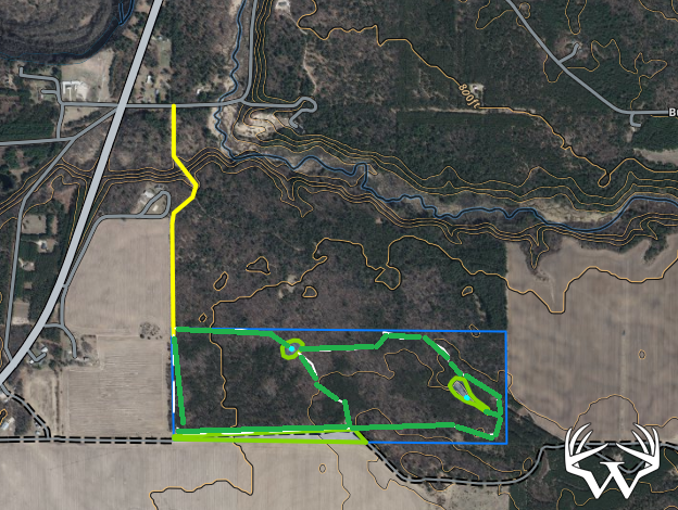 This exceptional 120.5-acre hunting parcel in Jackson County offers a rare blend of access, habitat, and proven wildlife activity. The property is accessed via a recorded 66-foot easement leading directly to the northwest corner, providing convenient yet secluded entry.